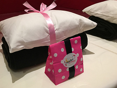 Detalle de la sorpresa y accesorios para dormir.